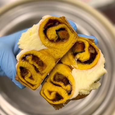 かぼちゃ生地に甘くてシナモンの香り豊かなシナモンシュガーをたっぷりぬり、